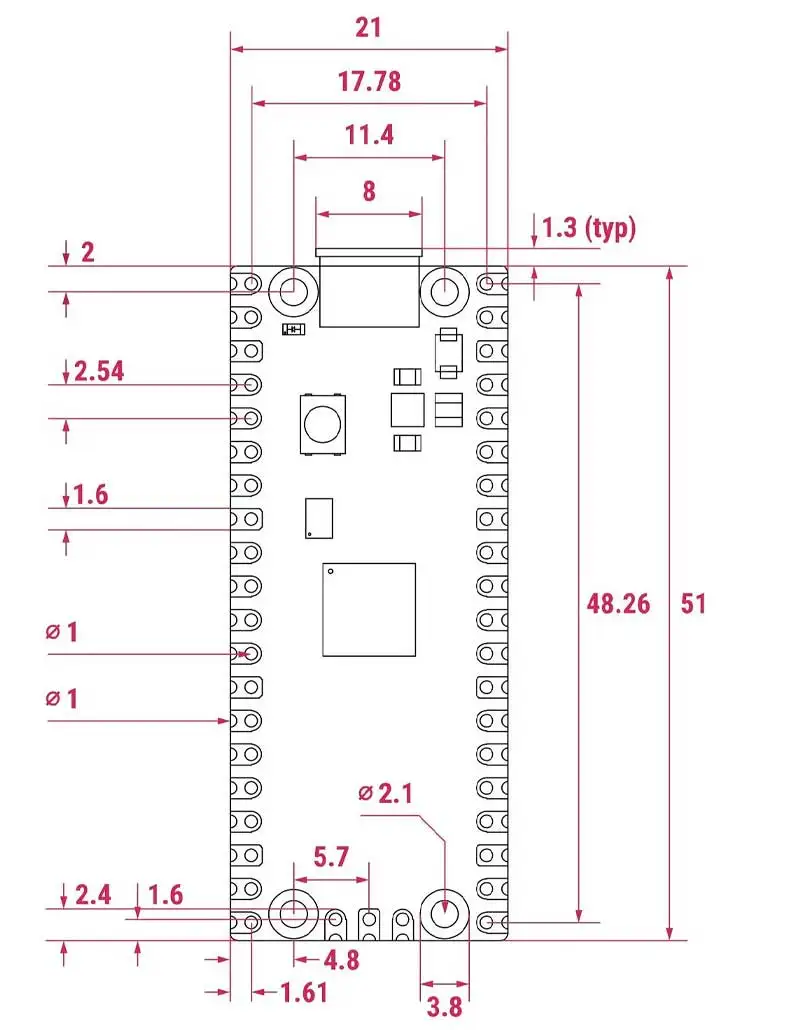 Note:The photo shown is Raspberry Pi Pico, Pico 2 is similar.