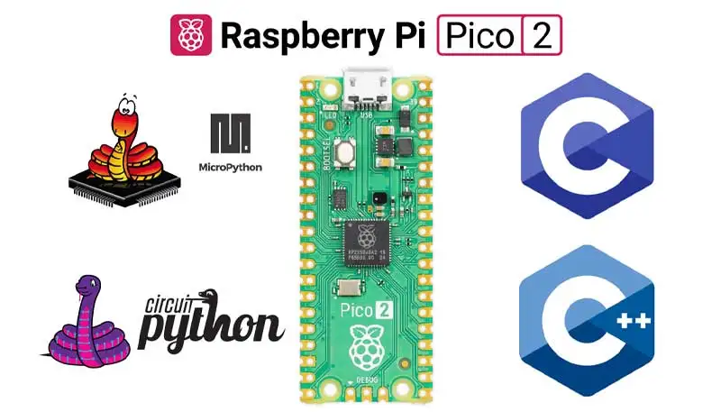 Besides MicroPython, Raspberry Pi Pico 2 also supports CircuitPython, C, and C++ Programming Langauge. Check out the C/C++ SDK for more info. All these programming languages are loaded into Raspberry Pi Pico/2 through USB Mass Storage which enables the simple drag-and-drop method (like copying a file to another drive).